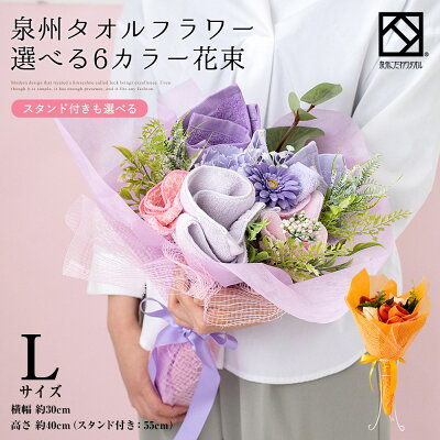 タオルと造花を組み合わせてブーケにアレンジしたフラワー花束。